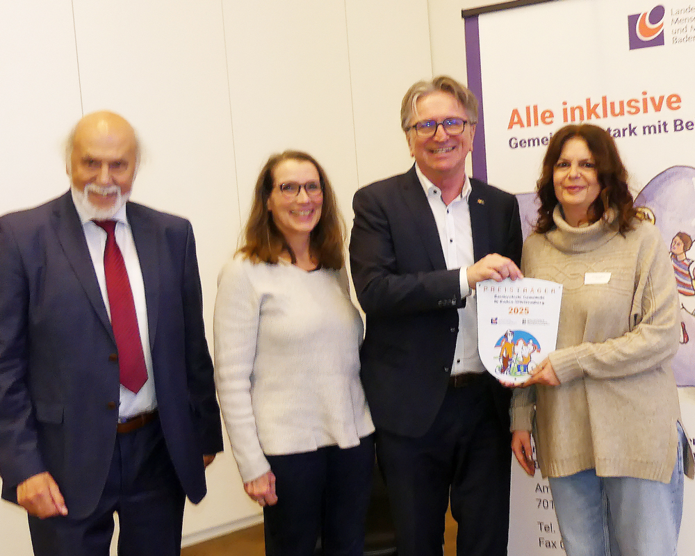 Bei der Preisverleihung „Alle inklusive: barrierefreie Gemeinde in Baden-Württemberg 2025“, wurde Leimen u.a. für die Datenbank hürdenlos ausgezeichnet. Diese hat das Büro für Inklusion erstellt.