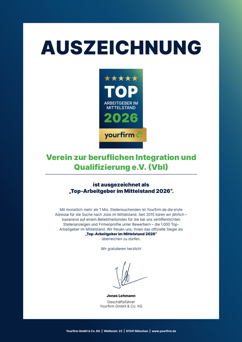 Auch 2026 wurde VbI wieder als Top-Arbeitgeber im Mittelstand ausgezeichnet!